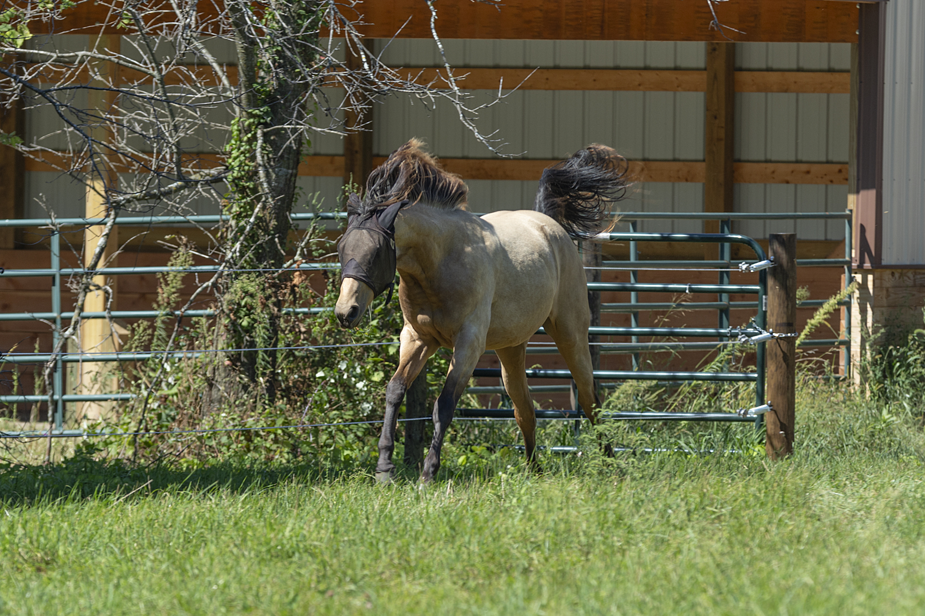 I was all ready with my camera on day one turnout in the new pasture. Not sure what I was expecting with background clutter and horses wearing fly masks. It felt kinda anti-climatic.